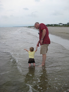 After getting settled at the beach, we took a walk on the beach and Delaney walked in the ocean for the first time. She was very curious and seemed to really like it. She also really liked looking at the seagulls and imitating their sounds.
