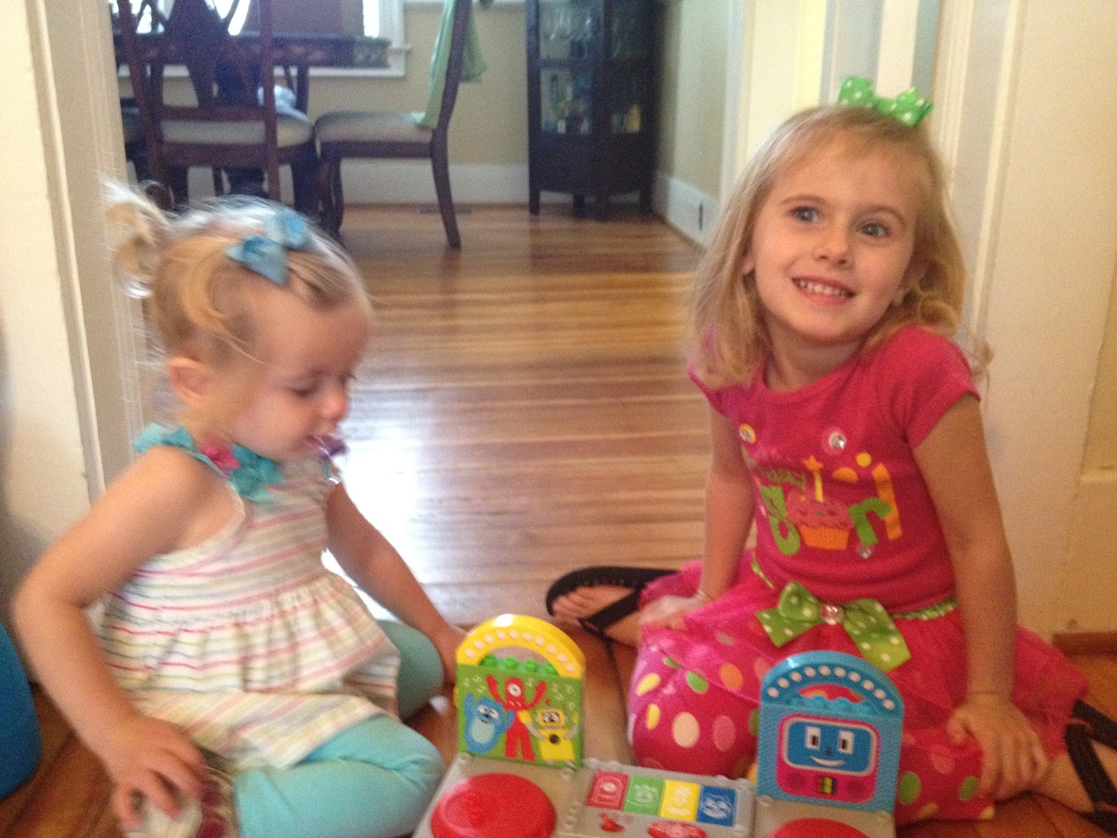 | Wearing her "It's the Birthday Girl!" tutu outfit from Grammy and doing a little dance move. |