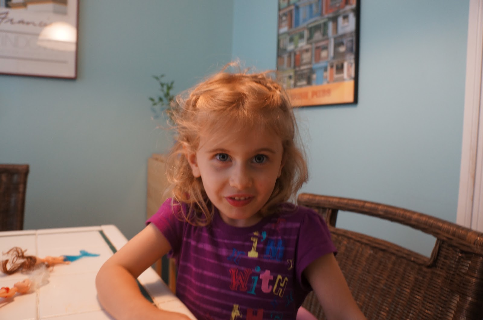 | Miranda was very cute holding Delaney on her lap during a car video game. |